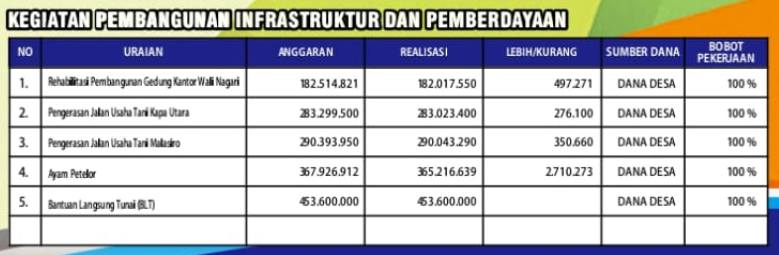 Nagari Kapa Umumkan Realisasi APB Nagari 2024